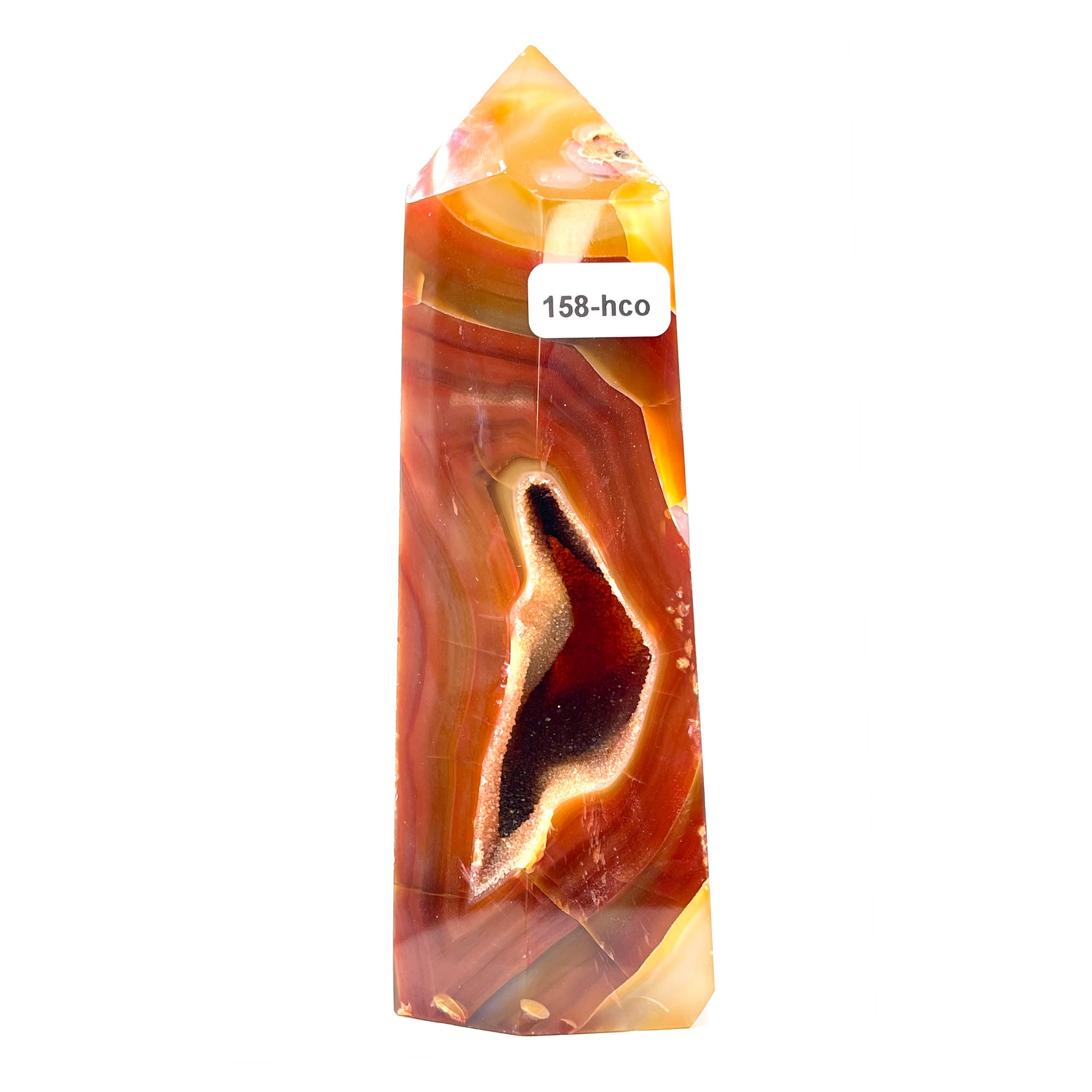 Carnelian tower with beautiful druzy caves